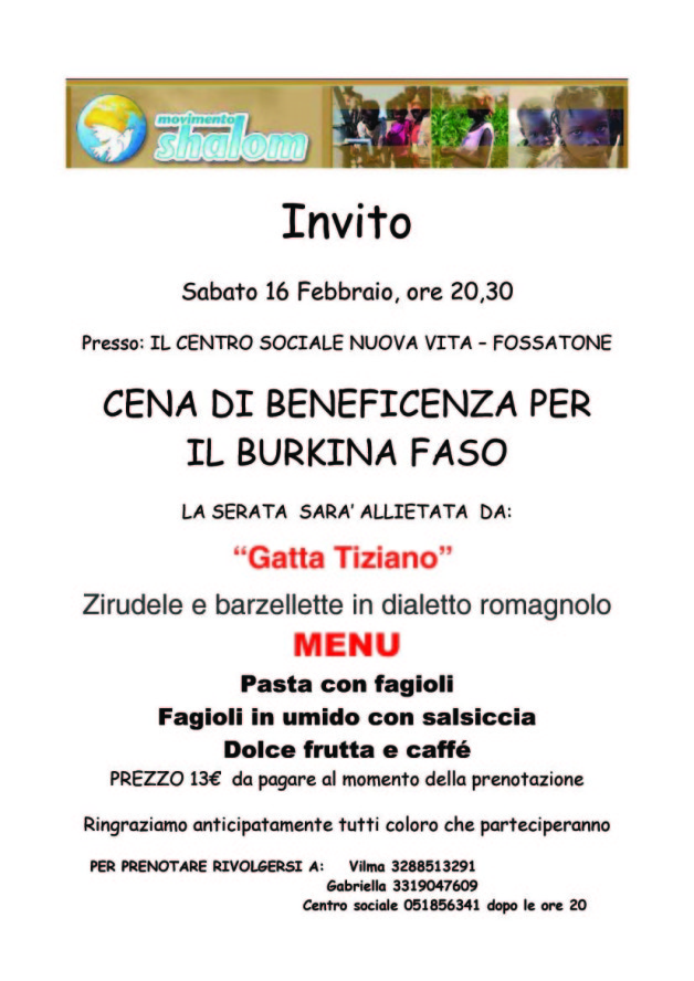 Civico 69, una cena di beneficenza per gli alluvionati del Sannio.NAPOLI - Sabato 21 novembre alle ore 20.30, nella sala della Mostra d’Oltremare di Napoli, il gala “10 ANNI DI IMPEGNO CON IL MEGLIO DI TE”, la cena. Giovedi 26 novembre – ore 20.30 – Istituto Alberghiero Nazareno – Carpi (MO) Menu a prezzo fisso 25,00 € Buffet di antipasti vegetariano con Crema fritta. Venerdi 20 novembre, a partire dalle 19,30 presso Il Deserto , cena di beneficenza a favore della missione di Ambana-Bolivia dell.Operazione Mato Grosso. Gradita la. Come aiutare il Sannio? Con una cena di beneficenza organizzata per il prossimo giovedi 26 novembre a partire dalle ore 20:00. Il 25 Novembre si celebra la giornata mondiale contro la ” Violenza alle Donne”. Due appuntamenti importanti, in questa settimana, vedono in prima. Perugia generosa, cena per salvare la bambina che non ha mai conosciuto il sorriso. La cena di beneficenza avra lo scopo di raccogliere fondi per l.